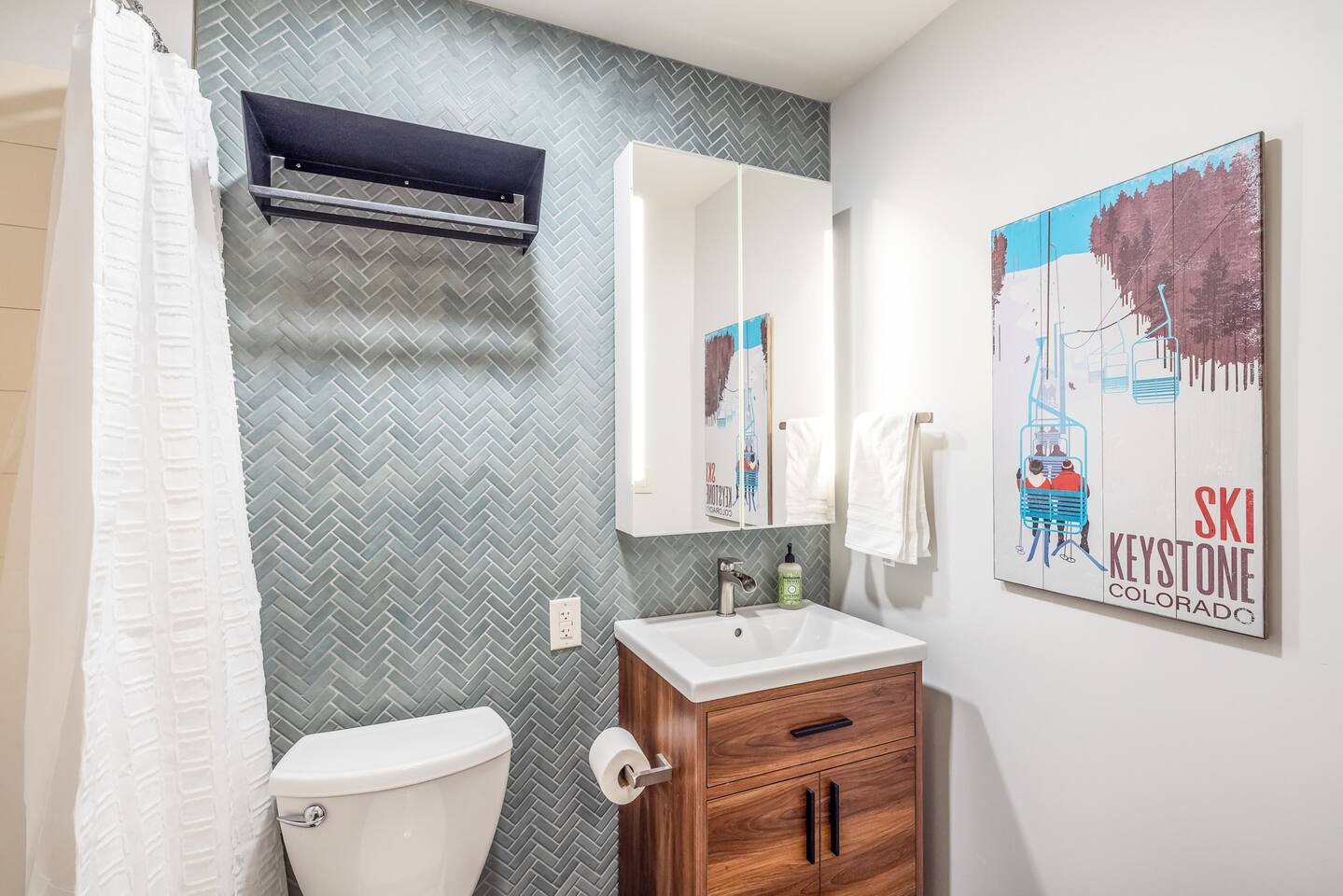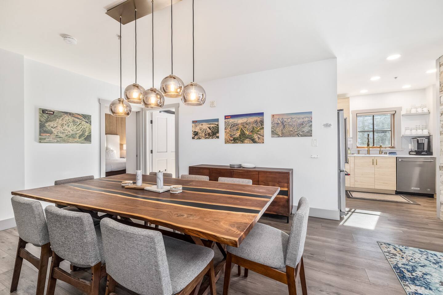 This condo is amazing! Perfect for gathering together. There is space in this unit to eat, sleep, laugh, play, get ready, sing, dance, ALL OF THE BEST THINGS IN LIFE! KITCHEN - Pots and pans (good ones, no loose handles here!), baking dishes, containers for leftovers, pizza pan, sheet pans - Drinking glasses, plates, bowls, coffee mugs, mixing bowls, cutting boards, knives, and dish towels - Dishwasher, induction range, convection microwave, refrigerator/freezer with ice - 4-slice toaster, slow cooker-air fryer instant pot (all-in-one), hand mixer, air popcorn maker, and Blendtec blender LIVING ROOM - 1 Queen Sleeper sofa & 2 armchairs DINING ROOM - Large table + 10 seats COFFEE BAR - Keurig Coffee machine PRIMARY BEDROOM, En Suite - King-size Helix mattress - Black out shades + night stands + lamps - Luggage Rack + wardrobe - Wall-mounted 50” TV - En Suite Bathroom with double sink vanity with lighted fogless mirrors, pro-style hair dryer, shower and jacuzzi tub, shampoo, conditioner, and body wash - Desk - Mountain view 2nd BEDROOM with En Suite Bathroom - King-size Helix mattress - Located off the dining room - Black out shades + night stands + lamps - Luggage Racks + wardrobe - Wall-mounted 50” TV -En Suite Bathroom with double sink vanity with lighted fogless mirrors, pro-style hair dryer, shower, shampoo, conditioner and body wash 3rd BEDROOM - Twin over Queen Helix mattress bunk with twin trundle (sleeps 4) - Located off the dining room - Black out shades + lamps - Luggage Rack + wardrobe + chest of drawers - Wall mounted 50” TV MASTER BATHROOM, located in Primary bedroom See Primary Bedroom description 2nd Master Bathroom, located in 2nd bedroom See 2nd Bedroom description 3rd Bathroom, located near the entrance to the unit - Bathtub/shower combo - Lighted mirror medicine cabinet - Pro-style hair dryer ENTERTAINMENT - 55" SmartTV with Roku - 50" Smart's in all bedrooms - Real Choice live TV or use your own login to access a variety of streaming apps. - Monopoly + A Keystone Puzzle are housed in the buffet in the kitchen cabinet above the range & microwave. - WiFi - PS5 Console for gaming or watching Blu-ray DVDs. BUILDING AMENITIES - Underground parking for 1 car 7'6" clearance - Back deck with mountain view - Outdoor heated pool (year-round) - Hot tub shared with the building - Ski locker - Steam Room - Gym LAUNDRY + CLEANING - Washer and dryer in unit - Laundry detergent provided - Rags, cleaning supplies, dishwasher pods, vacuum, mop, and broom - We provide a starter pack of paper towels, garbage bags, and toilet paper (which typically is plenty for a 3-day stay!) About a 5-minute walk to River Run Gondola. Close Amenities: River Run has restaurants, coffee shops, ski rentals, convenience grocery stores, souvenir shops, and retail stores Driving Distances: 5.1 mi/8 min - Arapahoe Basin (Shuttle Available) 7.9mi/12 min - Skyline Cinema 8 8.2mi/13 min - Walgreens 9.4mi/16 min - Target 14.6 mi/24 min - Breckenridge (Shuttle Available) 39.1 mi/45 min -Vail 47.6 mi/54 min -Beaver Creek 100 mi/1hr 44min -Iron Mountain Hot Springs We have put a lot of thought and detail into this condo unit, and we are sure you will love it during your stay here in Keystone. If we missed anything or you have any questions, just shoot us a message! We typically respond in 1-2 hours (usually sooner, but just in case we are unavailable, we will respond as soon as we can).